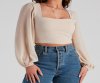 Keep it classy and chic with a crop top that takes you from day to night. The top features a square neckline, long sheer chiffon bishop sleeves, and a cropped hem. Complete the look with a