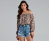 Bring the effortless beauty in this boho-chic cropped blouse. It features an off-the-shoulder neckline, long bishop sleeves, a cropped, elasticized hem, and an all-over paisley print. Style this top with