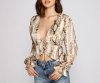 Keep it so fab in a ruffled top that is perf for dressing up! The top features a plunging V-neckline with a tie front, ruffled hem, long sleeves, and a trendy snake print. The top is composed of a sheer chiffon fabric that offers a relaxed fit with minimal stretch. Complete look with