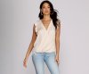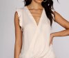 Breezy and effortlessly elegant, this satin blouse has a billowy cut ideal for your next warm-weather outing. Blouse features ruffle-trim sleeves, a deep V neck that pools into a surplice-style middle, an elasticized front hem, and a slightly longer back hem. Top is made from a smooth, satin-y woven material with little to no stretch.