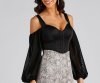 You'll feel so luxe in this satin corset crop top! It features a flattering sweetheart neckline with flowy sheer chiffon puff sleeves with elastic banded hems and a form-fitting corset top. Pair it with