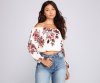 Get a forever stunning look this season in this gorgeous floral blouse. It features an off-the-shoulder neckline, long blouson sleeves, and an overall relaxed fit with a cropped cinched hem. Pair this top with a
