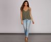 Upgrade your just kickin' it gear with this breezy-chic crepe cami. Top features cross back spaghetti straps leading to a crochet panel, a V neckline, and a button front leading to a twist-front hem. Top is cut for a more relaxed fit and is made from a lightly textured rayon with little to no stretch.