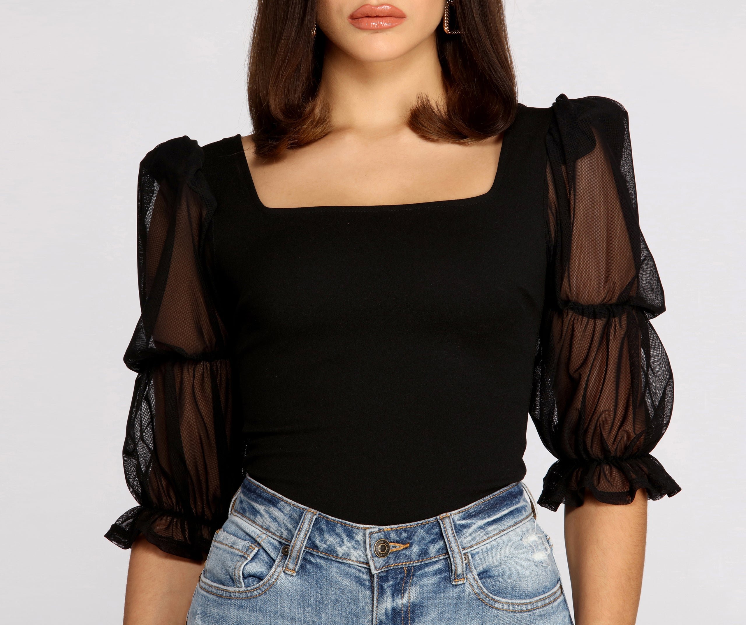 It's totally the moment for mesh, and this square neck fitted top will give you that trendy look you've been lusting after.
