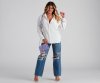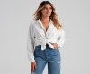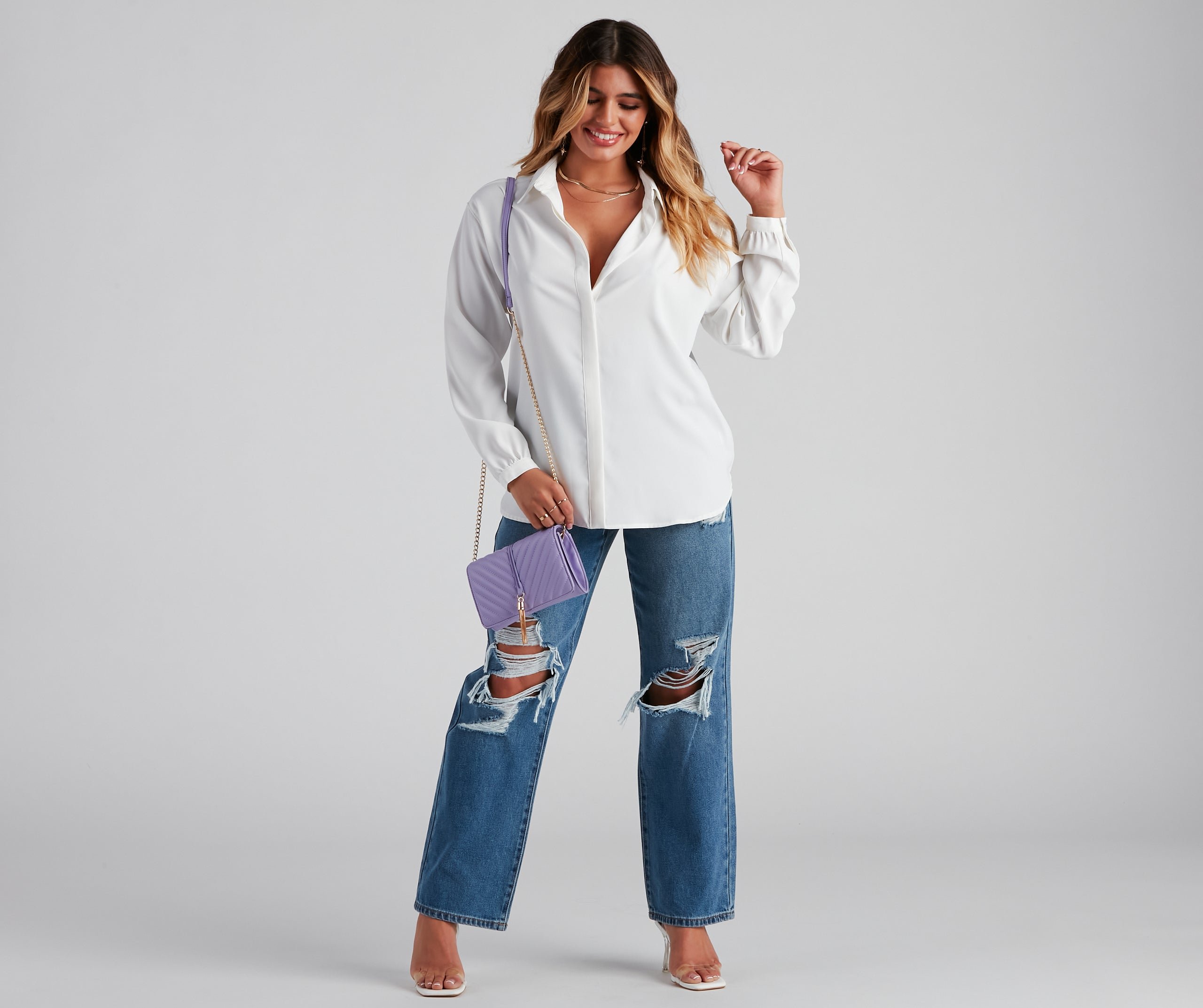 Make a lasting impression in this long-sleeved blouse! It's designed with a button-up front, collar, and mid-length. This shirt is composed of a lightweight woven fabric that offers a relaxed fit with minimal stretch. Wear with a pencil