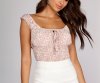 This crop is so adorable. Featuring a round neckline, a keyhole cut out at the center of the neckline with a tie yourself detail, elastic cap sleeves with a ruffled effect, a knit lining at the cup area, and a smock detailing below the breast that offers a maximum stretch and form fit. The crop top is composed of a knit material with a white floral pattern all over.