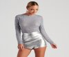 Bring the shine to your outfit with a bodysuit that is totally glam! The bodysuit features a faux pearl with rhinestone embellishments, a crew neckline, long sleeves, and a thong bottom with dual snap button closure. The bodysuit is composed of an unlined mesh fabric that offers a form-hugging fit with a moderate stretch. Complete look with faux leather pants and an