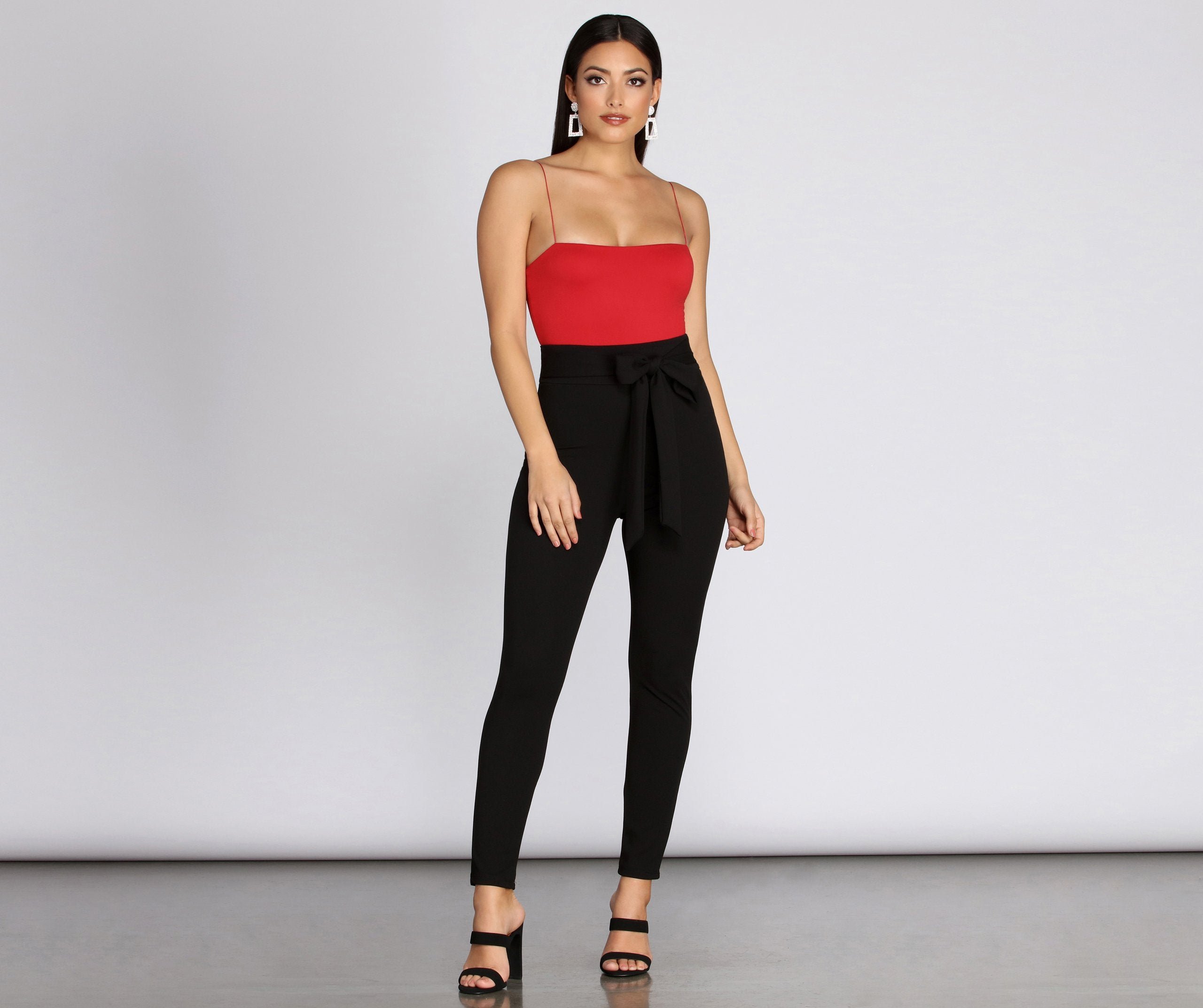 We all love a basic bodysuit that goes with just about everything! This bodysuit's form-hugging fit is so flattering to show off curves. The bodysuit features a trendy square neckline and stretchy bungee straps that offer a comfortable fit on shoulders. Complete your outfit with