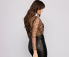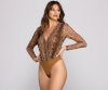 You'll be feelin' fierce and fashionable in this trendy snake print bodysuit. It features a wrap front deep V neckline with a small button closure, shoulder pads, sheer long fitted sleeves, a high waist, and a thong bottom with dual snap button closures. Pair this bodysuit with