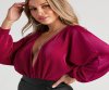 Flawless and sultry! Bring the allure in this surplice bodysuit featuring long balloon sleeves, a plunge V-neckline, and a faux wrap bodice, cheeky bottom with dual snap-button closures on pleated knit fabric. Complete the look in hot