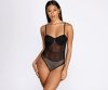 This spotted bodysuit is so adorable! It features a sweetheart neckline, wired cups, and spaghetti straps that are adjustable and lead to a square back with a zipper closure, and a cheeky bottom with a double snap closure. Composed of a sheer mesh material that offers moderate stretch and a form fit with a fun polka dot pattern!
