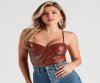 You'll wanna press pause cause you'll be obsessed with how you slay in this faux leather corset bodysuit perfect for a night out. It features a sleeveless sweetheart neckline, adjustable and detachable spaghetti straps, ruched bust, fitted bodice, and mesh thong bottom with dual snap-button closures. Complete the look in straight-leg