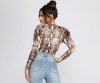 Make major moves in this trendy piece bb! This snake print bodysuit can easily be paired with denim or edged up with faux leather.
