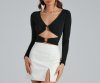 Make this bodysuit the one you can count on to make make a daring impression! The bodysuit features a plunging V-neckline, a double O-ring design, long sleeves, a sexy cutout at the midriff, and a thong bottom with a dual snap-button closure. The bodysuit is composed of a smooth knit fabric that offers a form-hugging fit with a moderate stretch. Complete look with high waist jeans and