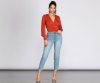 Designed to give you that girl next door vibe, this lightweight and flowy top is sweet and flirty! Featuring a v neckline, long dolman style sleeves, and a surplice bodice. Top has a banded waist line that is slightly cropped hitting mid waist and is composed of a poly knit material that offers a form fit with lots of stretch. Pair with high waist denim for a casual flirty vibe!