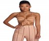 Move over, stripes! We're loving the details on this mauve crop top. It has a sweetheart neckline with a tie front detail between the bust, narrow adjustable shoulder straps, and a smocked back panel for added stretch. Top is composed of a gauze material. Pair with matching pants to complete the set!