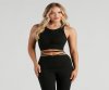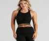 This casual-chic cropped tank is perfect for dressing up or down. It features a sleeveless crew neckline, tank shoulder straps, center-ruched detailing down the front, and a cropped, form-hugging fit. The ultra soft knit fabric offers plenty of stretch. Style with the matching flare pants for an effortless look.