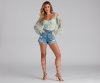 Showcase a gorgeous look in this lightweight chiffon corset top. It features a sweetheart neckline with a built-in padded bust, sheer long bishop sleeves with cinched ruffled hems, a corset-designed bodice, a cropped, form-hugging fit, and an all-over blooming floral print. Style this top with