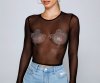 Make a haunting impression this Halloween with a top that brings the fright! The top features a crew neckline, ghost design strategically placed on the bust, sparkling rhinestones, long sleeves, and a cropped hem. The top is composed of a sheer unlined mesh fabric that offers a form hugging fit with a moderate stretch. Complete look with adhesive face gems and a
