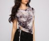 Take on the day with a cute tie-dye top that keeps your look on point! The top features a crew neckline, short sleeves, tie-dye print, and an O-shaped side drawstring. The top is composed of a soft to the touch brushed knit fabric that offers a relaxed fit with a moderate stretch. Complete look with a