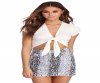 This ivory crop top is fitted, flattering, and so fun! It features a tie front detail that creates a deep V neckline, short cap sleeves, and a slim fit throughout. Top is composed of a stretchy, brushed knit fabric.?