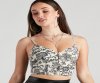 You'll totally vibe in this paisley crop top for a concert or girl's night! It features a sleeveless, sweetheart neckline, adjustable spaghetti straps, underwire bust, front hook-eye closures, and a smocked back panel. Complete the look in chic