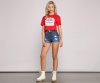 Let this crop top say it all! The top features a crew neckline, a vintage Budweiser graphic, short sleeves, and a cropped hem. The top is composed of a cotton knit fabric that offers a relaxed fit with a moderate stretch. Complete look with
