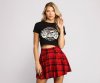 Get an edgy-chic vibe you can take from day to night in this must-have graphic tee! The crop top features slashed detailing with a center motorcycle graphic with angel wings and the script, "American Motorcycles, Custom, Vintage, Special." Pair this tee with a