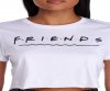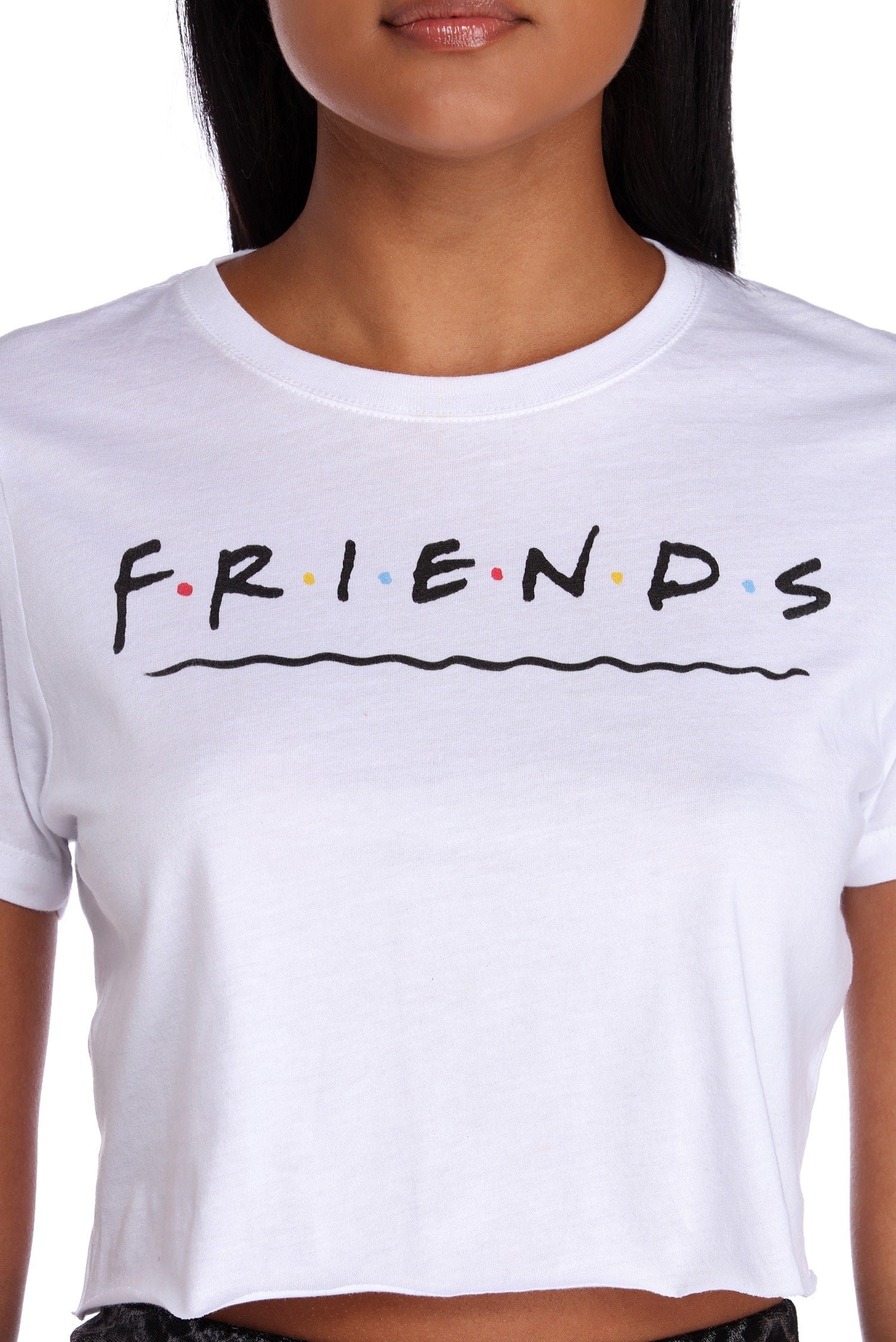 Don't forget to pivot! Catch your favorite re-runs in this cute Friends tee that has a basic crew neck, short sleeves and a cropped fit. The graphic tee is composed of a basic knit that offers plenty of stretch and features the iconic "Friends" logo across the front.