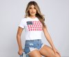 Celebrate those Americana vibes with a fun crop top! The graphic tee features a crew neckline, short sleeves, and small red cups with ping pong balls that form the American flag. Complete look with