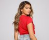 Hey?babe, get an edgy vintage vibe in this on-trend graphic tee! It features a crew neckline, short sleeves, a center motorcycle and wings graphic, a sexy lace-up front, and a cropped, raw-cut hem. Style this tee with high-rise denim shorts and