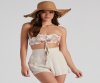 Make all the cheeks blush when you step out in this tropic chiffon bandeau! Featuring a sleeveless, strapless, neckline with a front ruched tie and back smocked panel. Complete the look in the matching top.?
