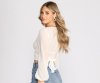 Get that boho-chic vibe going in this adorable tie-front top! It features long blouson sleeves, a deep V neckline, a tie detail that can be tied in the front or the back, and a cropped, form-hugging fit. Complete your outfit with
