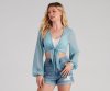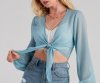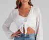 A chic blouse is a fab way to look put together in minutes! This must-have top features a plunging tie-front bodice, long sleeves, and a cropped hem. The top is composed of sheer airy chiffon fabric. Complete your look with