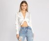 Chic with an edge, this satin tie front top can easily be layered on to make a trendy 'fit. It features a lapel collar, V neckline, tie front closure, and a cropped hem. The top is composed of a leopard print satin-like fabric with no stretch. Pair this top with