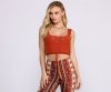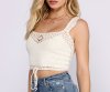 Slay all day in in trendy crochet in this adorable tie front crop top! Complete your spring time look with a distressed denim mini skirt or boho printed flared pants!