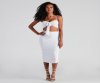 Stay on-trend in a ruched crop top. The top features a plunging sweetheart neckline, a tie-front accent, ruched side seams, spaghetti straps, and a cropped hem. The top is composed of a smooth knit fabric that offers a relaxed fit with a moderate stretch. Complete your look with the matching skirt and
