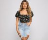 This adorable floral crop top will be a new favorite for the summer season! It features short puff sleeves, a ruffled sweetheart neckline, a tie-front detail, and a cropped, form-hugging fit. The floral printed woven fabric has a stretchy smocked back. Style this top with a