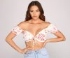 Summer is the time for florals! Stun in this adorable printed crop top. It features a V-neckline with a ruffled trim, short puff sleeves, a tie-front detail, and a cropped fit. The lightweight gauze fabric has a pretty all-over floral print. Style this top with a