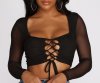 Lace up into this chic and sultry mesh crop! Pair the top with some high waist faux leather pants for that ultimate edgy girl vibe.