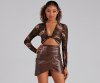 You might lose your marbles over this sultry tie-front top featuring long sleeves, a plunging neckline, and a cropped hem. Composed of stretchy sheer mesh fabric. Finish the look in a fab