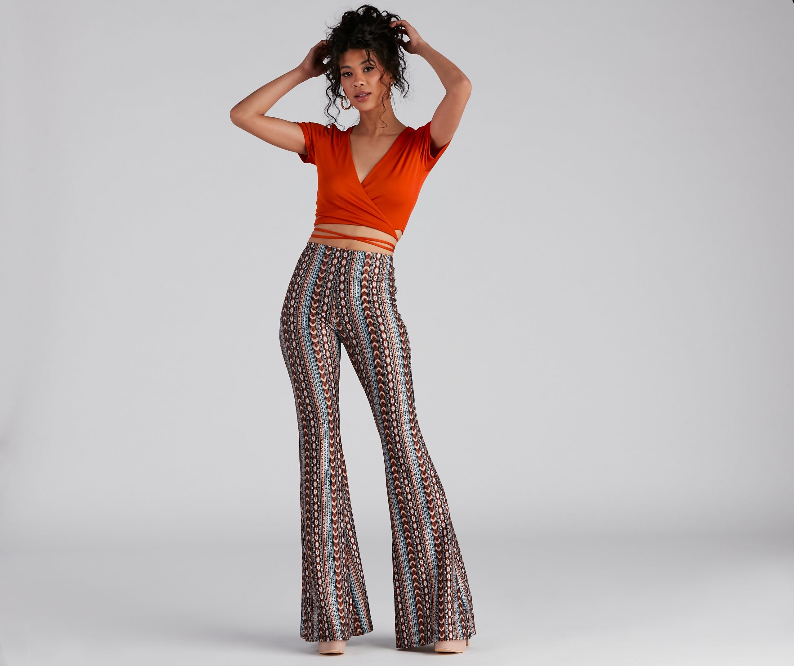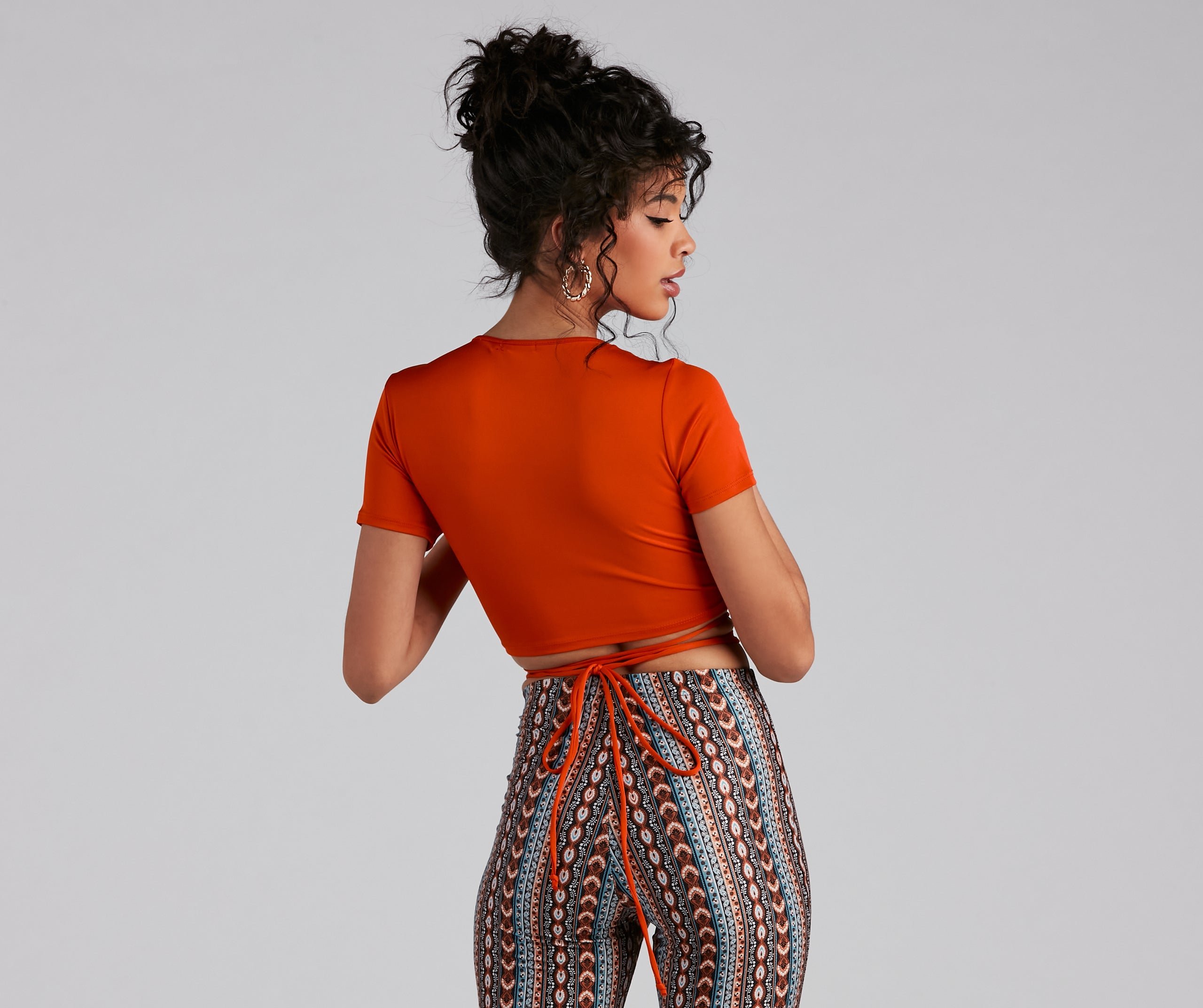 The prettiest wrap crop top you've ever seen! It features short sleeves, a V-neckline, and a wrap tie-waist on sleek knit fabric with a moderate stretch. Complete the look with jeans and