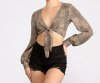 Get a purrfect look in this sassy chic leopard print top! Pair with some high rise black denim shorts and strappy mules and get ready to go to happy hour with your girls!