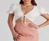 Channel major charm in this linen tie-front top featuring short puff sleeves, an open-front design, and a cropped hem. Complete the look with a lace