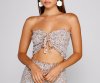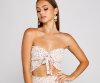Get a darling and chic look with this ditsy floral tube top that is perf for summer! It features a strapless sweetheart neckline, a cute tie-front detail, a cropped, form-hugging fit, and a smocked design. Complete the outfit with the matching mini skirt for weekend brunches with the girls.