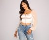 Showcase your sweet style in this adorable crop top! It features long sheer chiffon puff sleeves, a satin bodice with a sweetheart neckline, a ruched bust with a tie front detail, and a cropped, form-hugging fit. Pair this top with