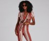 Show up with your tribe looking so boho cute! This tie-front crop top features short sleeves, a plunge v-neck, and a tribal pattern on brushed knit fabric with a moderate stretch. Style with the matching bottoms.?