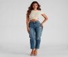 Your outfit of the day will slay in this crew neck tee featuring short sleeves and a wrap-tie cropped hem on stretchy, rib-knit fabric. Complete your trendy look in mid-rise