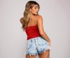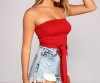 Tie yourself down with basics! This crop top is a total style staple that goes with all your favorite bottoms! The top features a strapless square neckline, a cropped hem with a tie waist accent, and is composed of a ribbed knit fabric. Complete the look with cutoff shorts and