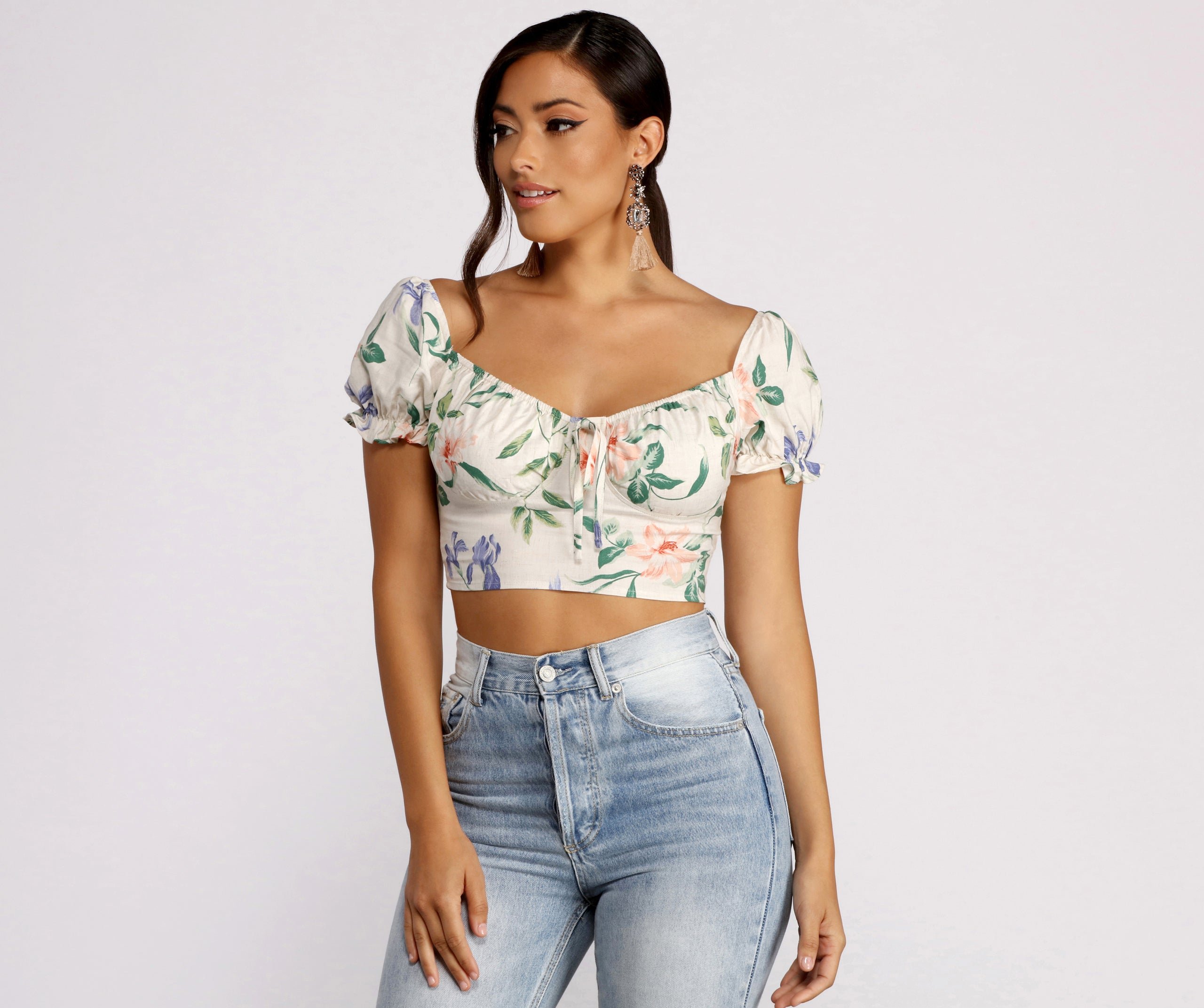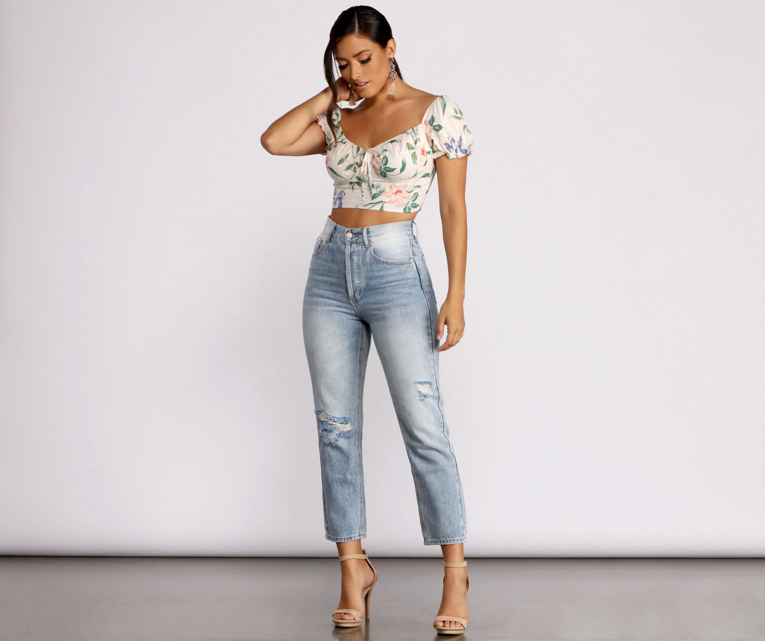 Time to hit the tropics in this paradise-inspired top! Let the pretty floral print transport you to an island paradise. Pair this crop with high waist skinny jeans and strappy heels for a complete look!